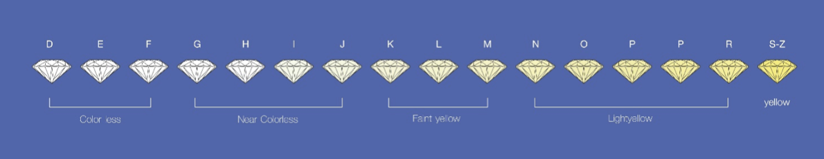 La valutazione del COLORE di un diamante è dettata dalla sua assenza di colore, la scala di riferimento inizia dalla lettera D (diamante incolore) per terminare con la lettera Z (diamante giallo paglierino). I diamanti con colore giallo saturo eccedono dalla suddetta scala per sfociare nella categoria FANCY, pietre uniche e rare che non seguono alcun listino. Di quest’ultima categoria fanno parte anche i diamanti con altri colori (rosa, blu, verdi…)
